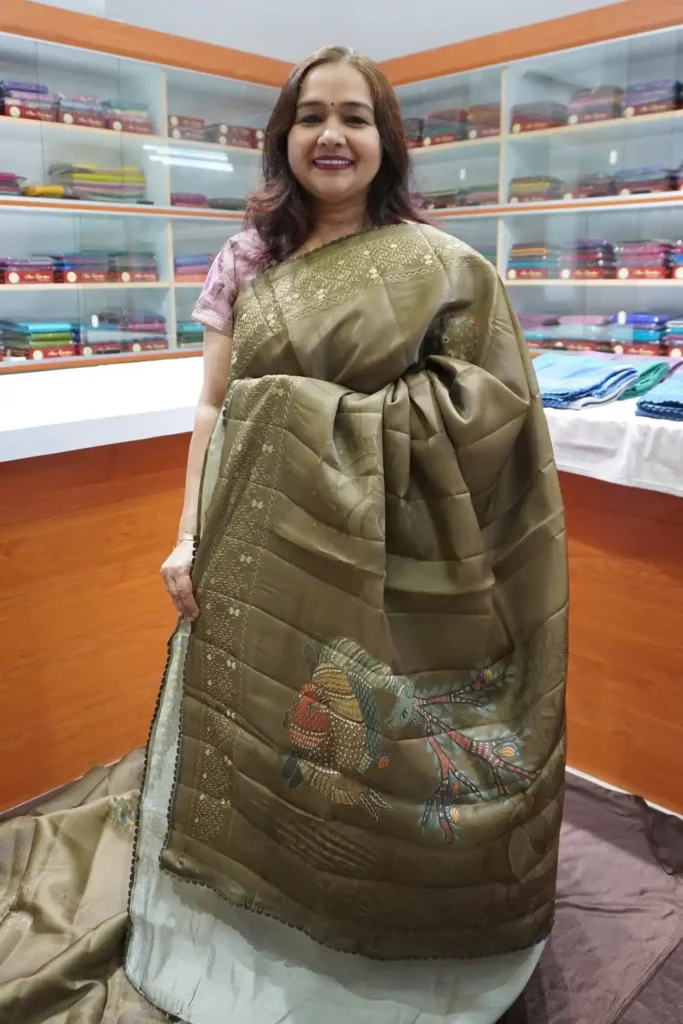 Olive Green – PRTS2 – Printed Tussar Silk Sarees