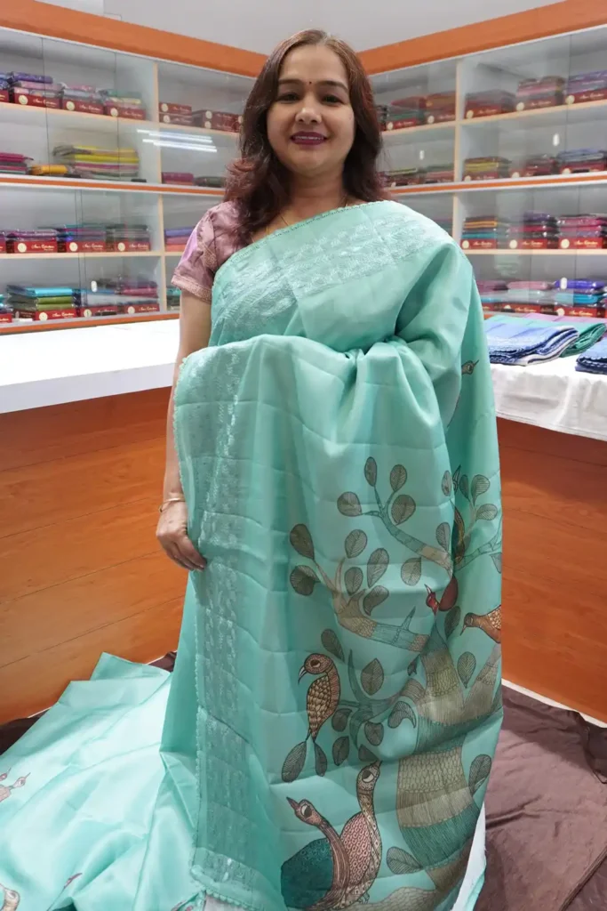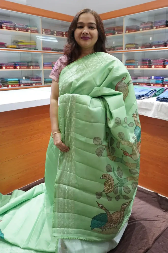 Pista Green – PRTS5 – Printed Tussar Silk Sarees