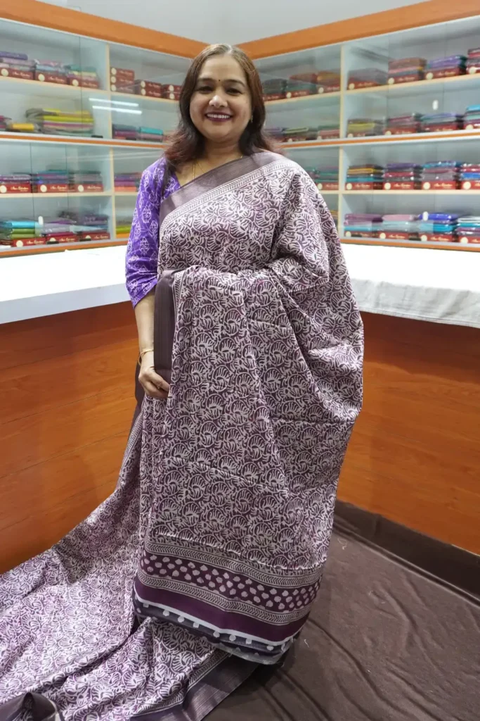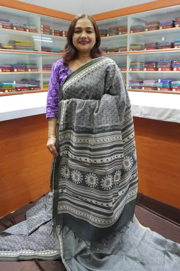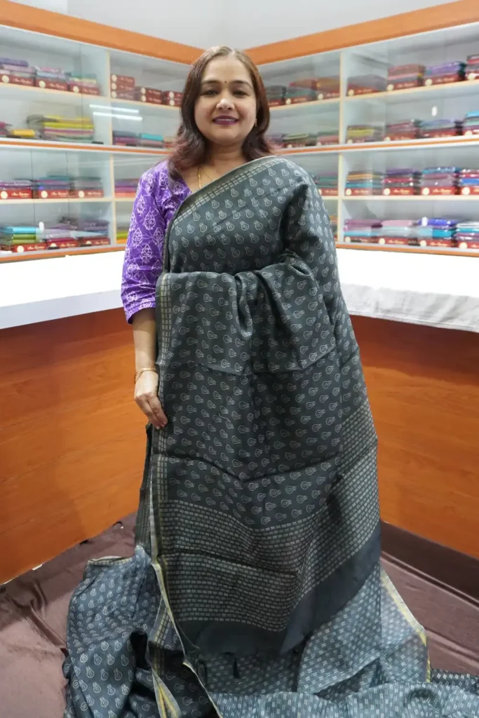 Dark Grey – OFF3 – Semi Chanderi Saree