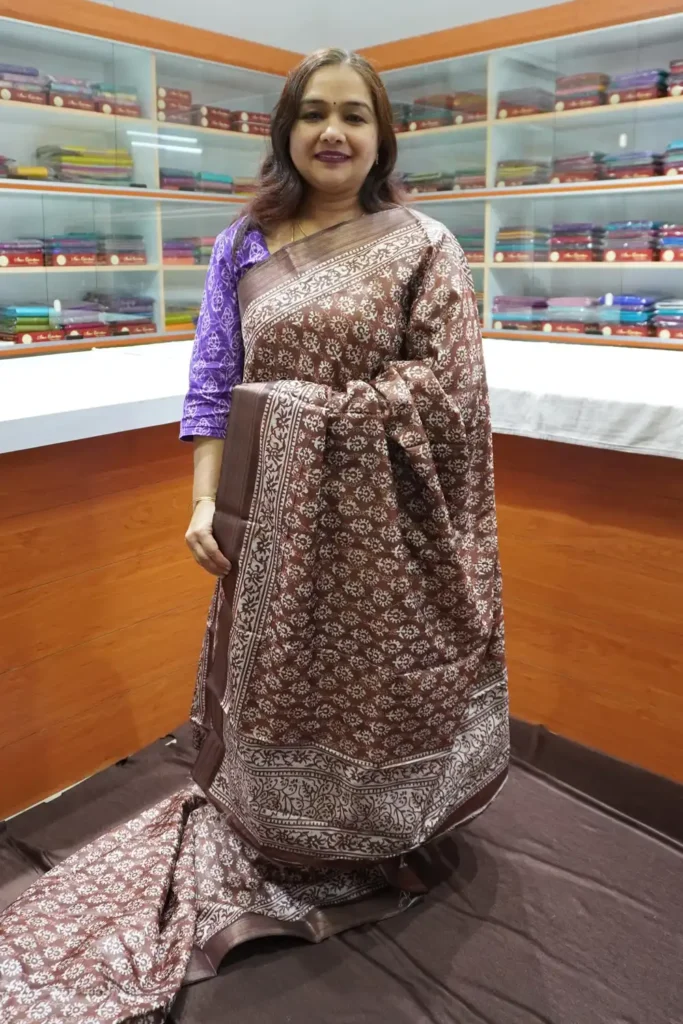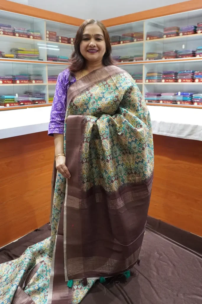 Green & Brown – OFF13 – Semi Tussar Silk Saree