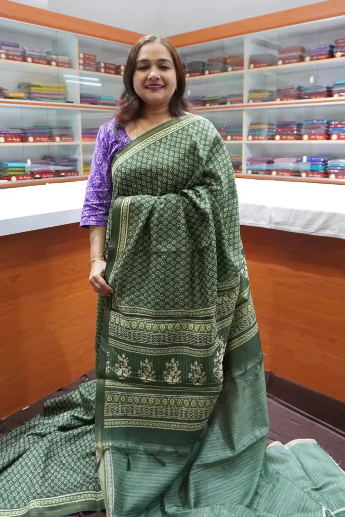 Mehandi Green – OFF1 – Semi Chanderi Saree