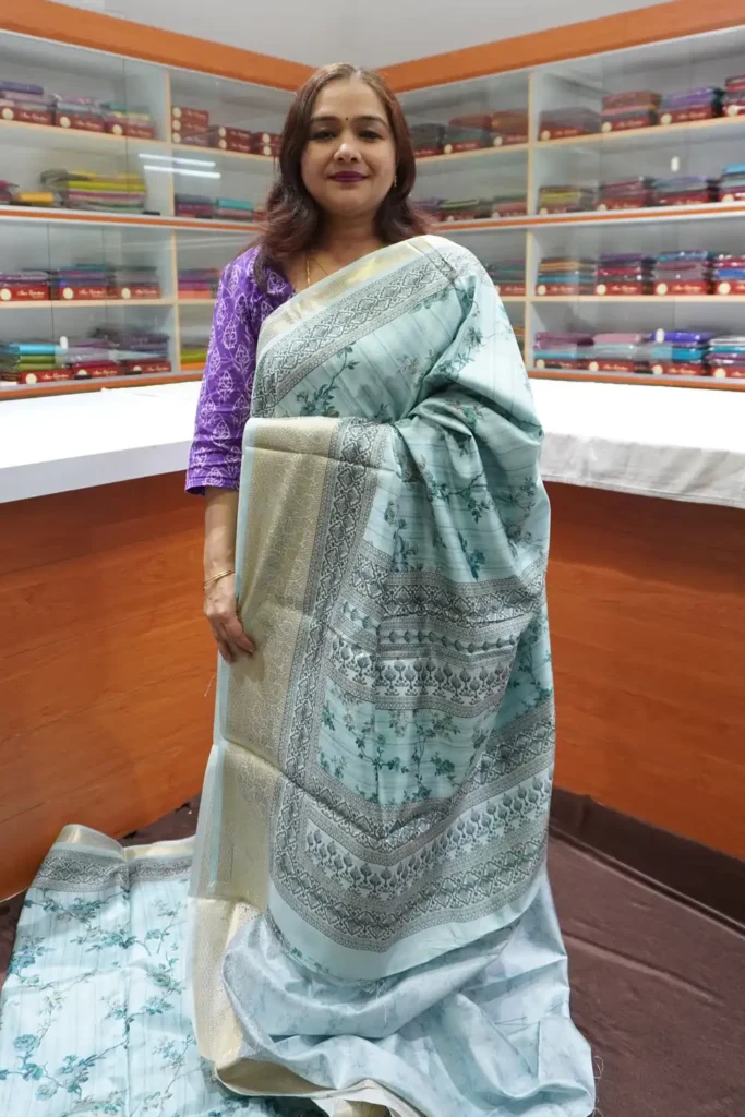 Light Blue – OFF5 – Semi Printed Silk Saree