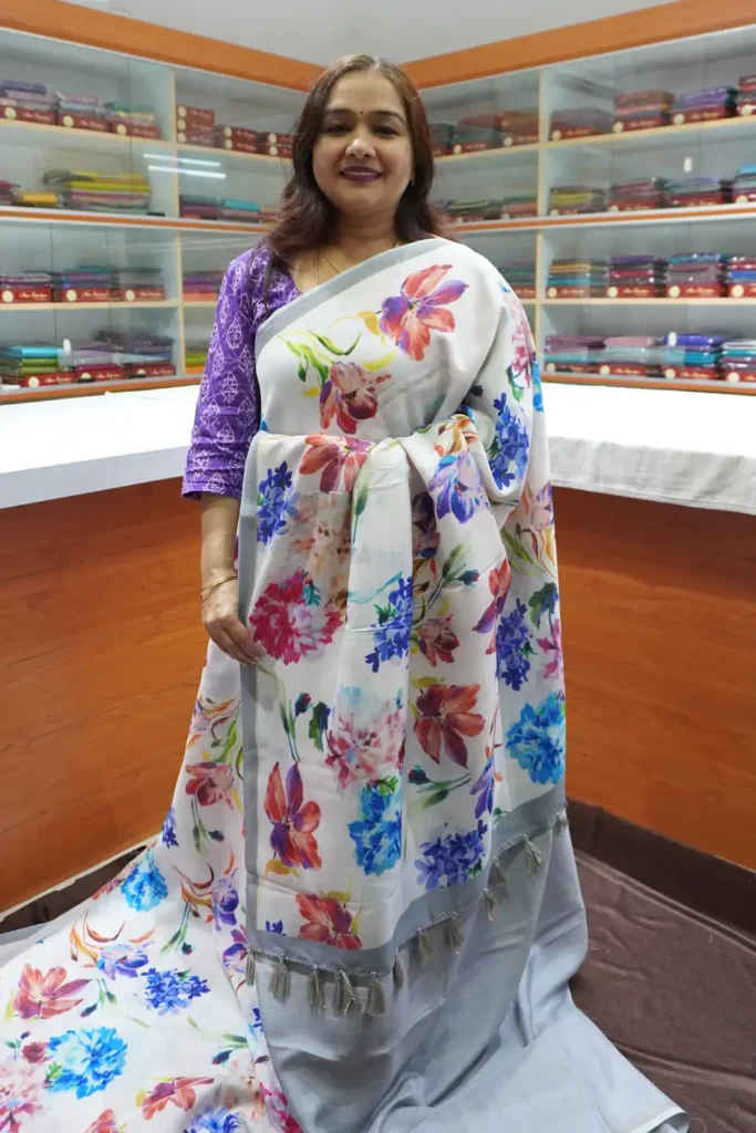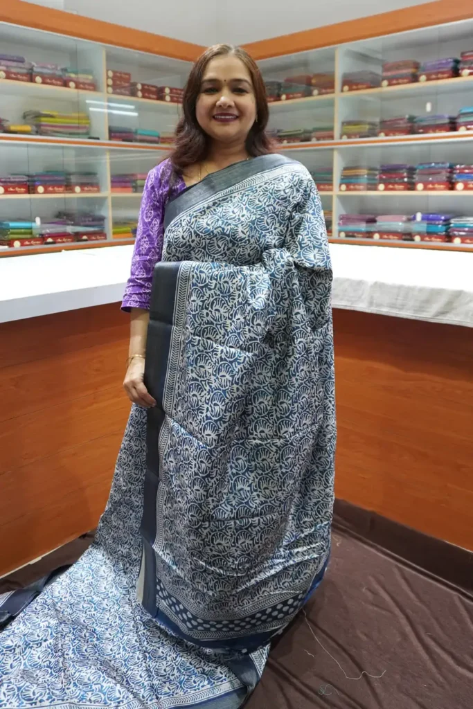 Nevy Blue – OFF11 – Semi Tussar Silk Saree