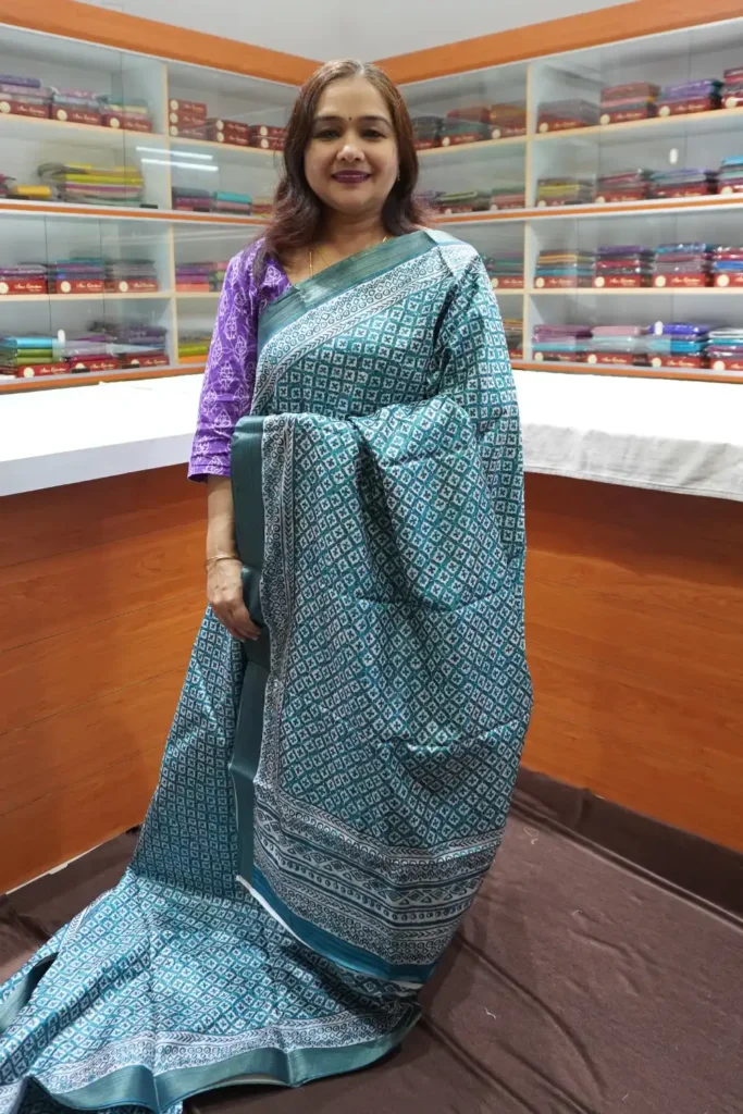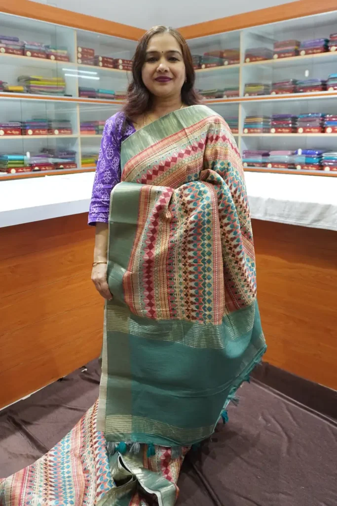 Peacock Blue – OFF9 – Semi Tussar Silk Saree
