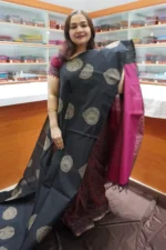 Black & Magenta Pink – SSC62 – Semi Silk Cotton Saree