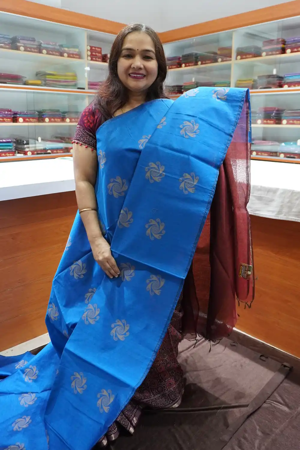 Blue & Maroon – SSC56 – Semi Silk Cotton Saree