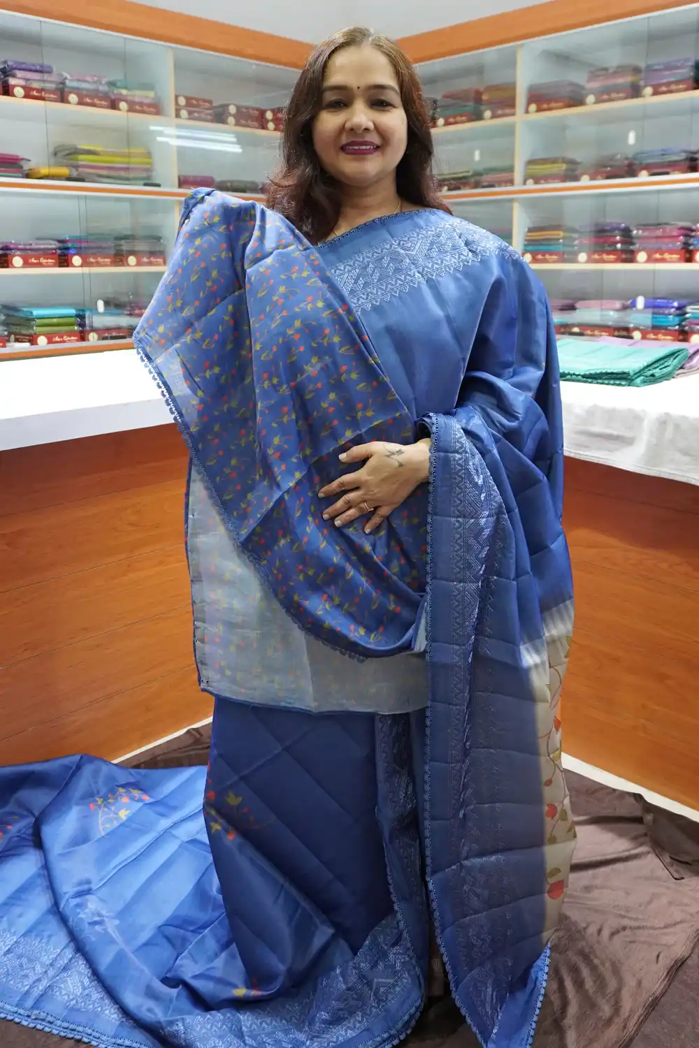 Blue – PRTS13 – Printed Tussar Silk Sarees