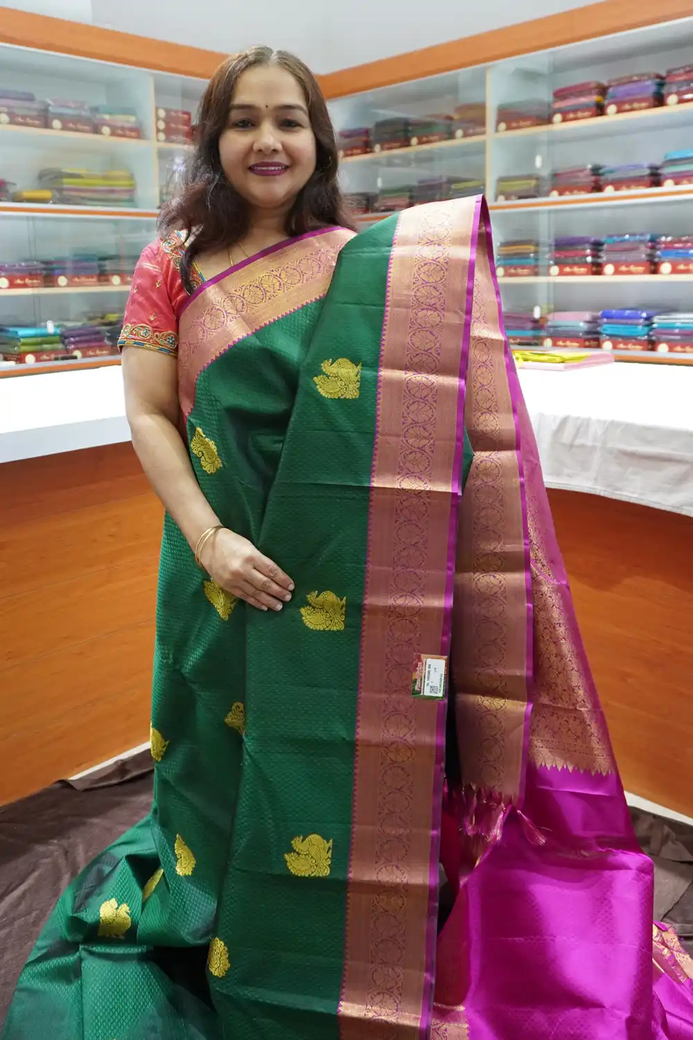 🌿 Premium Fabric – Crafted from authentic Kanchipuram silk, known for its lustrous texture and long-lasting quality.