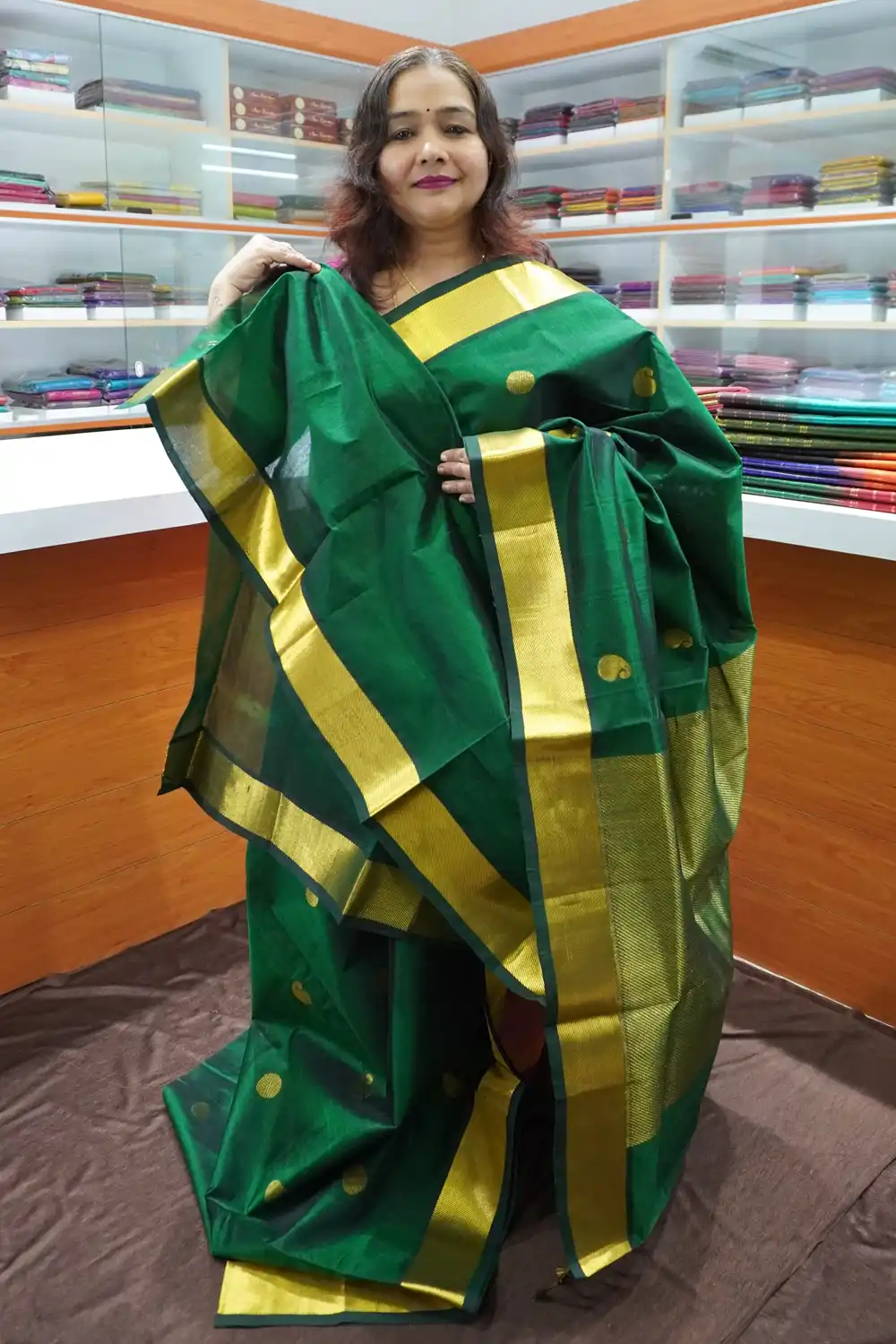 Bottle Green – PRSC120 – Pure Handloom Silk Cotton Saree