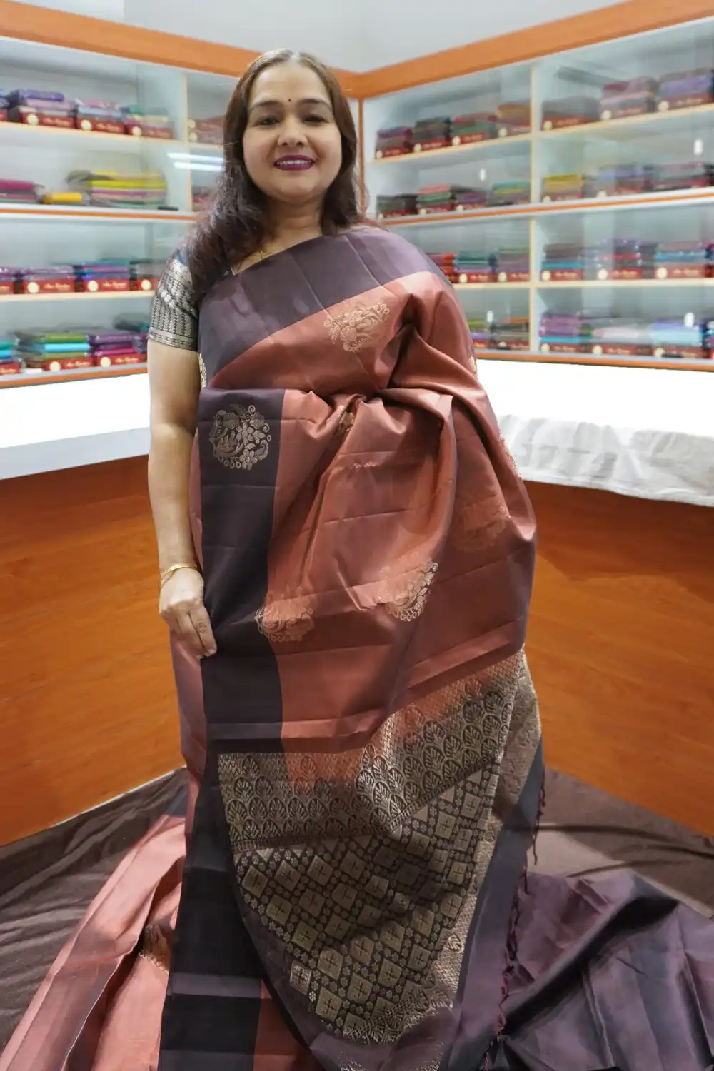 Brown & Coffee Brown – PRSK166 – Half Pure Kanchipuram Silk Saree