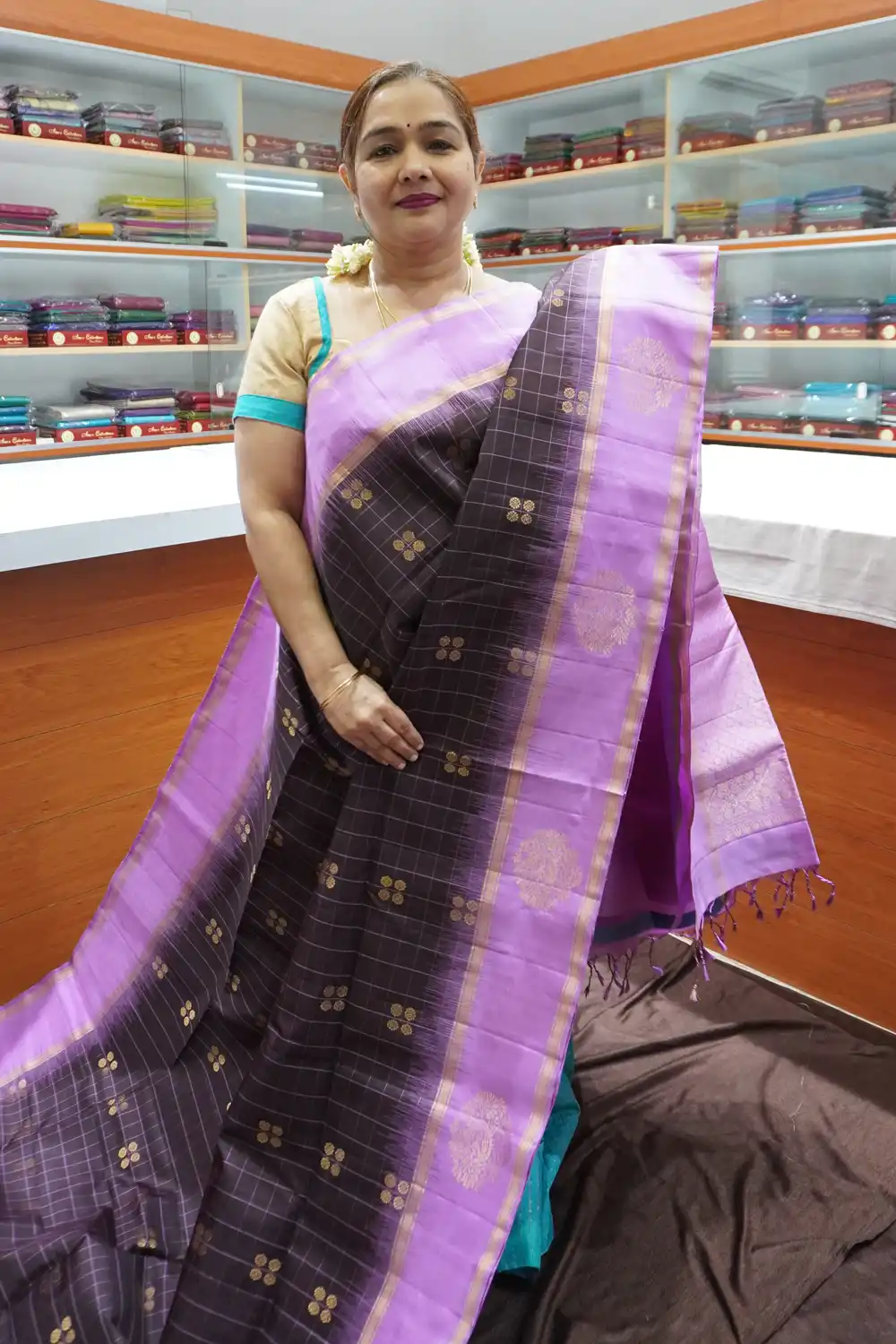 Coffee Brown & Lotus Pink – PRSK214 – Pure Kanchipuram Soft Silk Saree