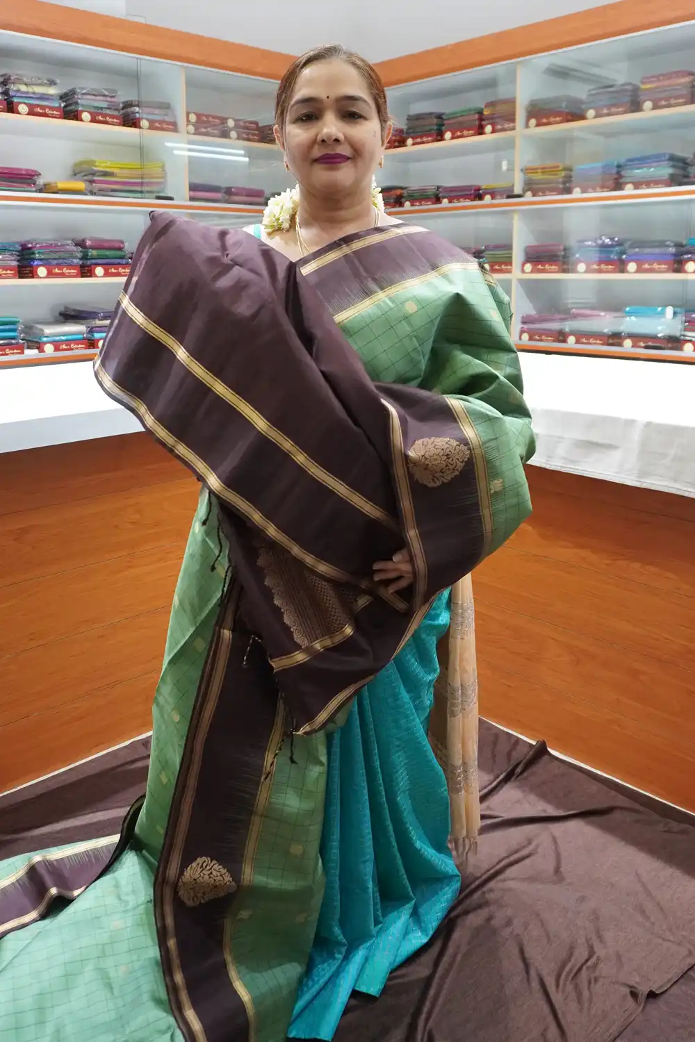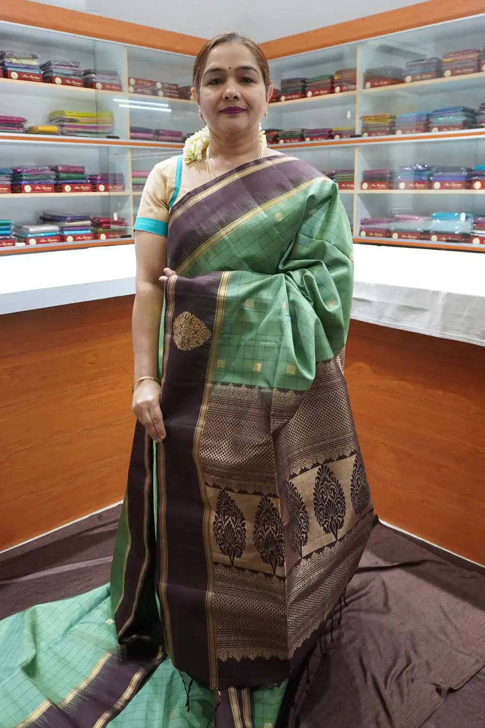 Elaichi Green & Coffee Brown – PRSK216 – Pure Kanchipuram Soft Silk Saree