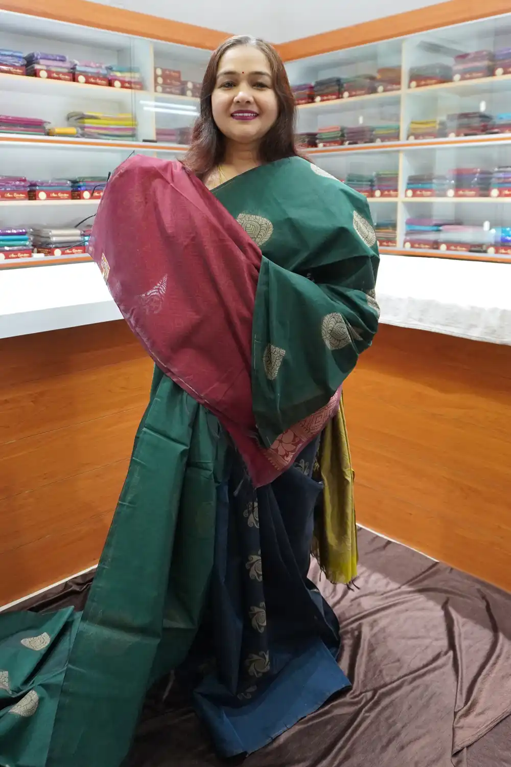 Green & Maroon – SSC4 – Semi Silk Cotton Saree