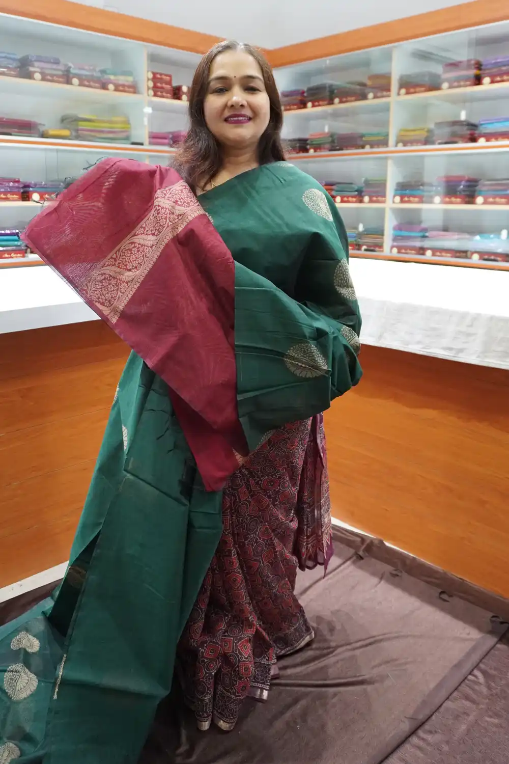 Green & Maroon – SSC49 – Semi Silk Cotton Saree