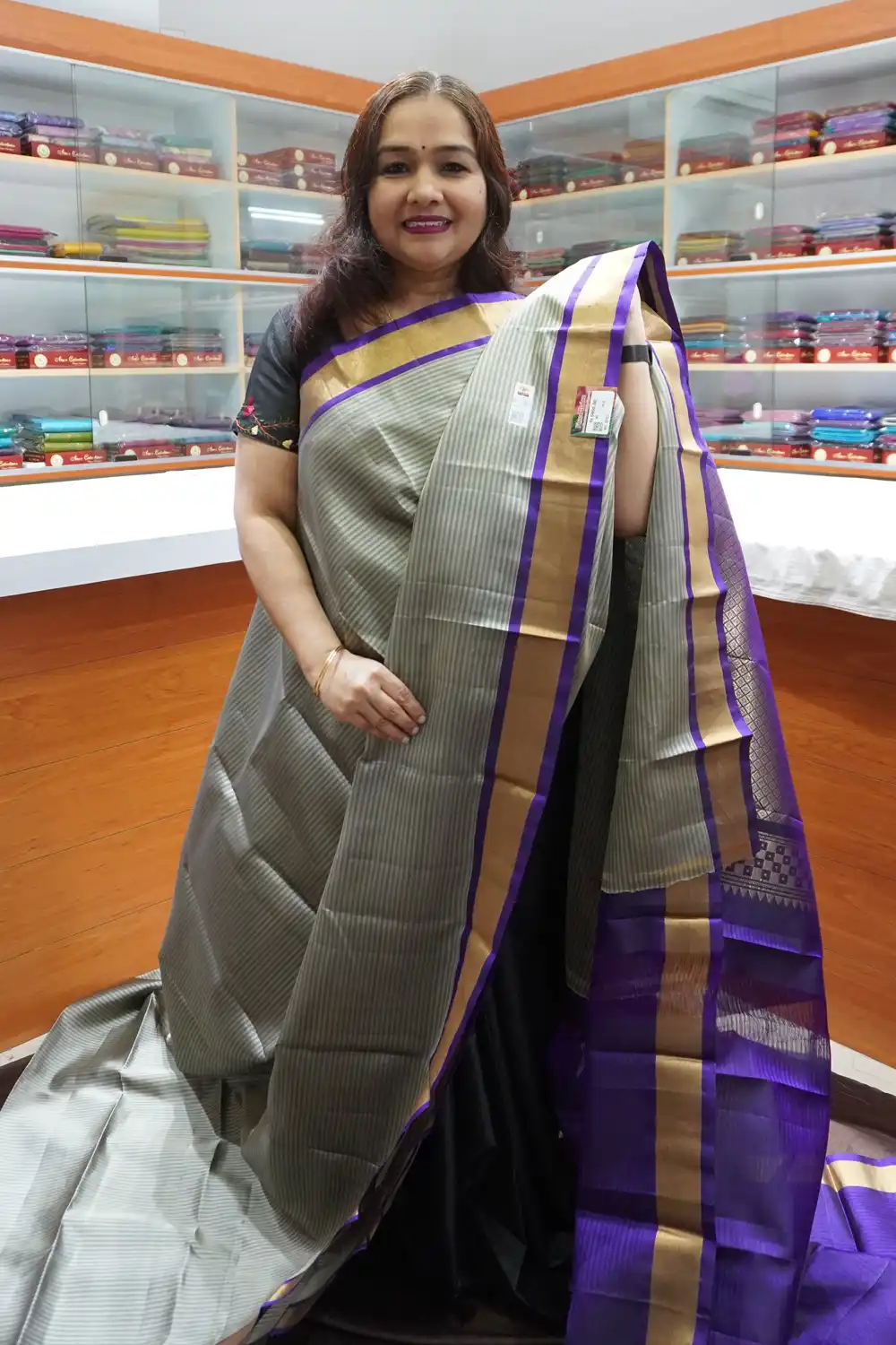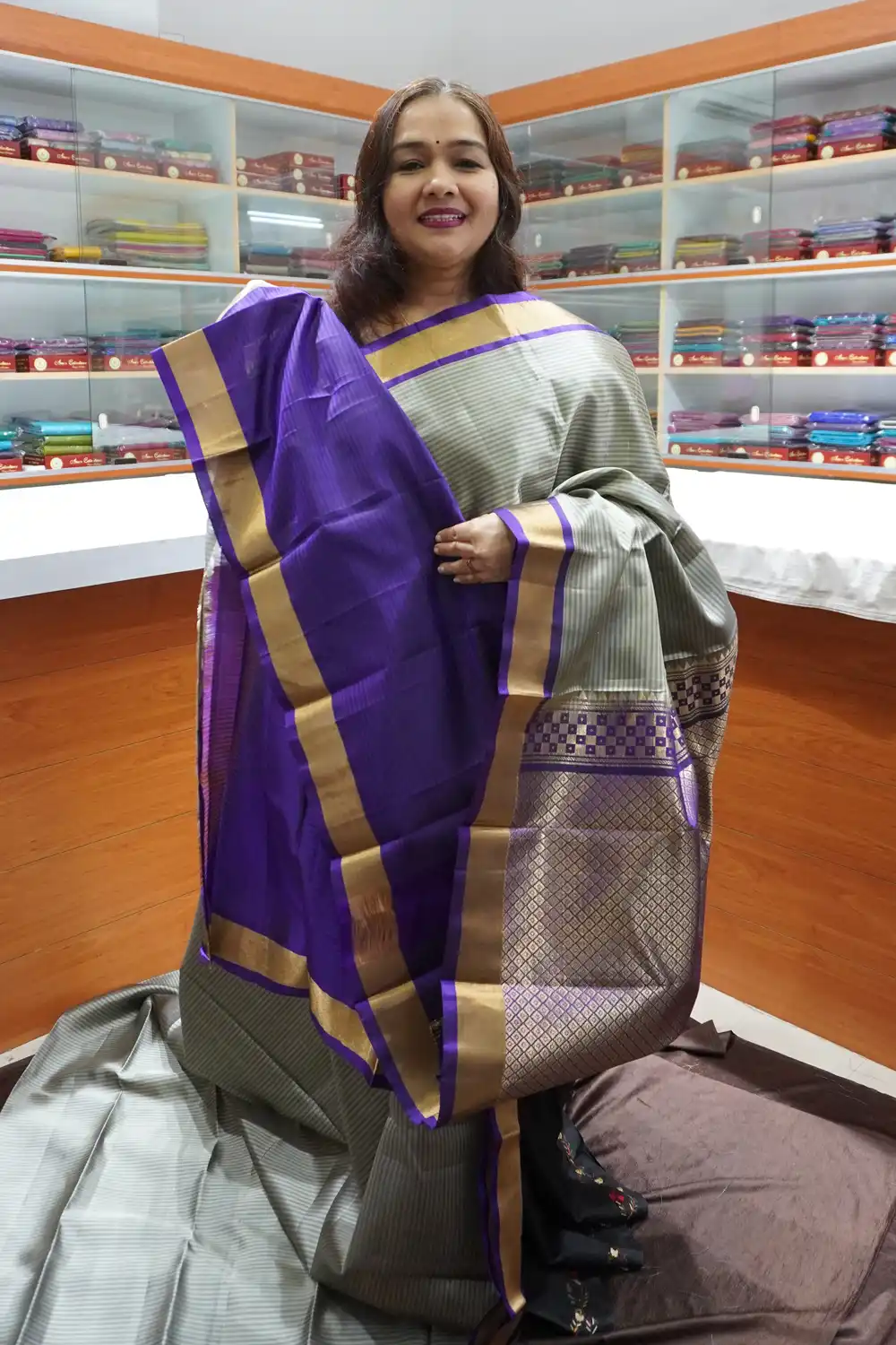 Grey & Dark Purple – PRSK163 – Pure Kanchipuram Soft Silk Saree