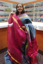 Grey & Rani Pink – PRSC206 – Pure Handloom Silk Cotton Saree