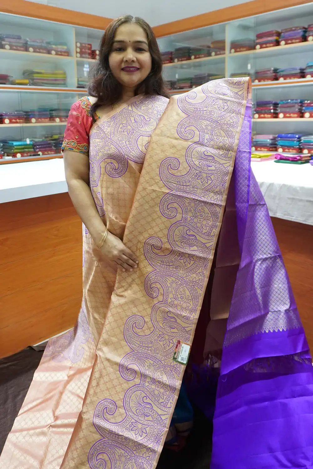 Be the first to review “Light Peach & Dark Lavender – PRSK157 – Pure Kanchipuram Silk Saree”