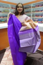 Light Peach & Dark Lavender – PRSK157 – Pure Kanchipuram Silk Saree