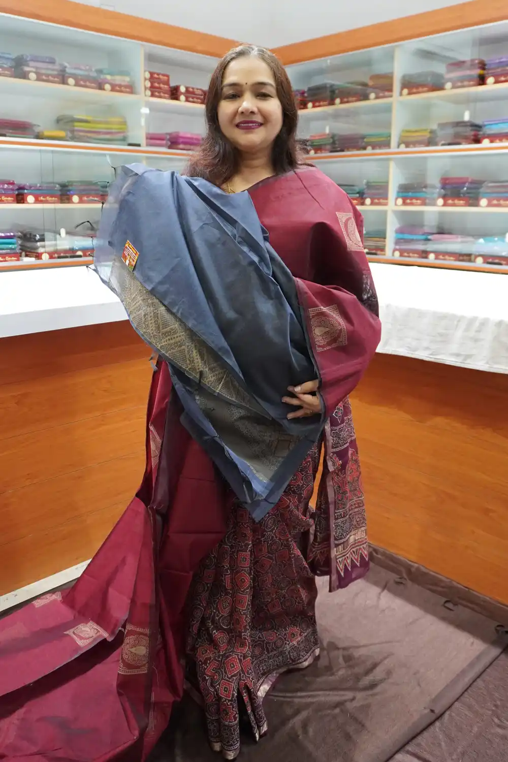 Maroon & Grey – SSC43 – Semi Silk Cotton Saree