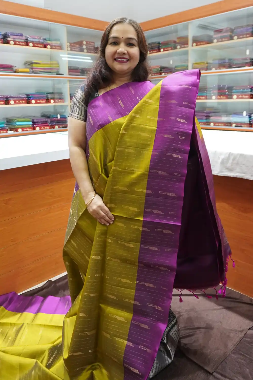 Mehandi Green & Burgundy – PRSK181 – Half Pure Kanchipuram Silk Saree