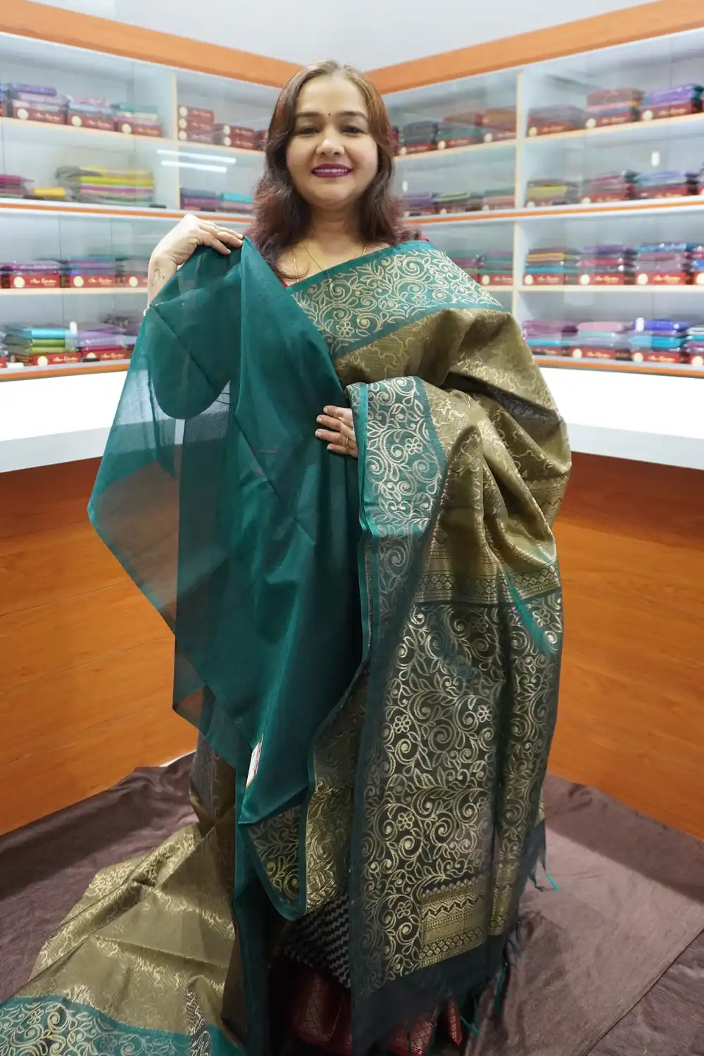 Mehandi Green & Peacock Green – PRSC244 – Pure Handloom Silk Cotton Saree