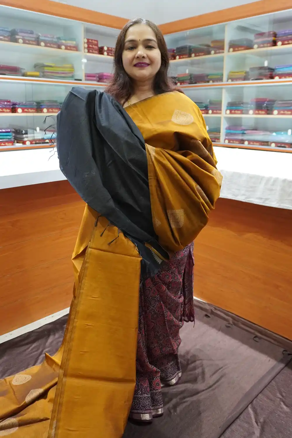 Mustard Yellow & Black – SSC40 – Semi Silk Cotton Saree