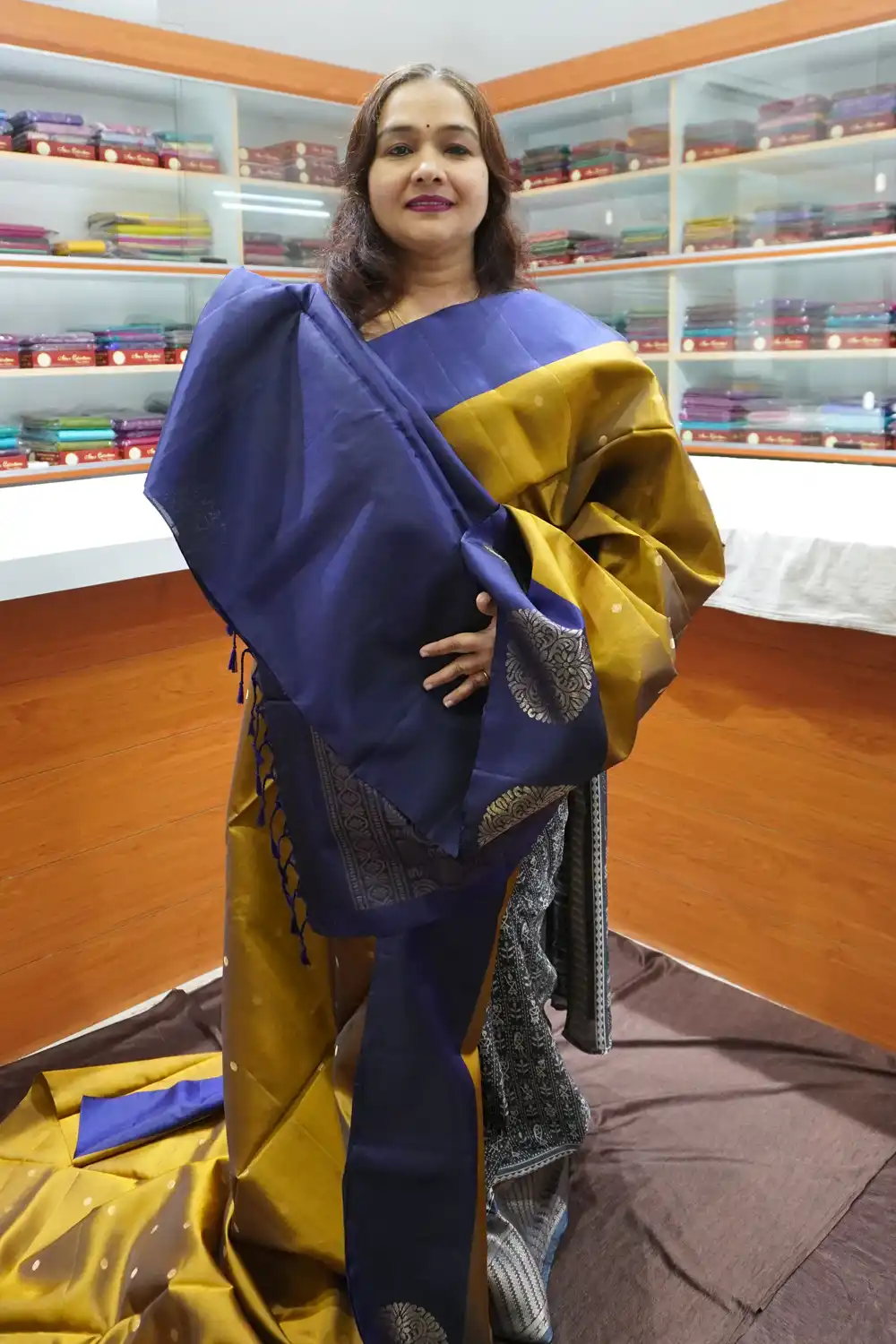 Mustard Yellow & Blue – PRSK179 – Half Pure Kanchipuram Silk Saree