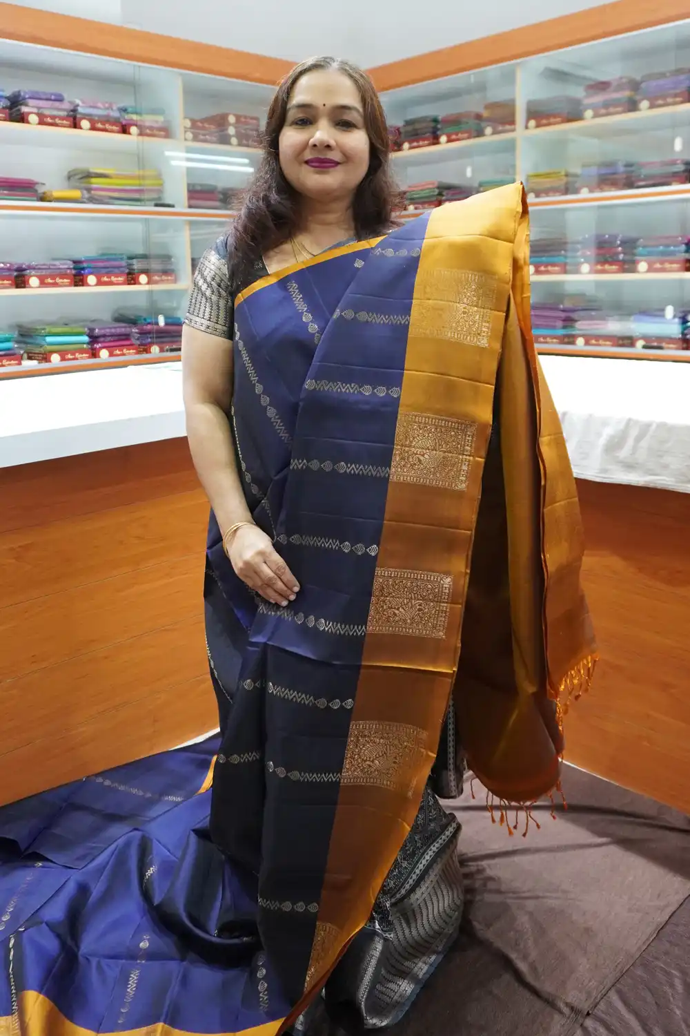 Nevy Blue & Golden Yellow – PRSK180 – Half Pure Kanchipuram Silk Saree