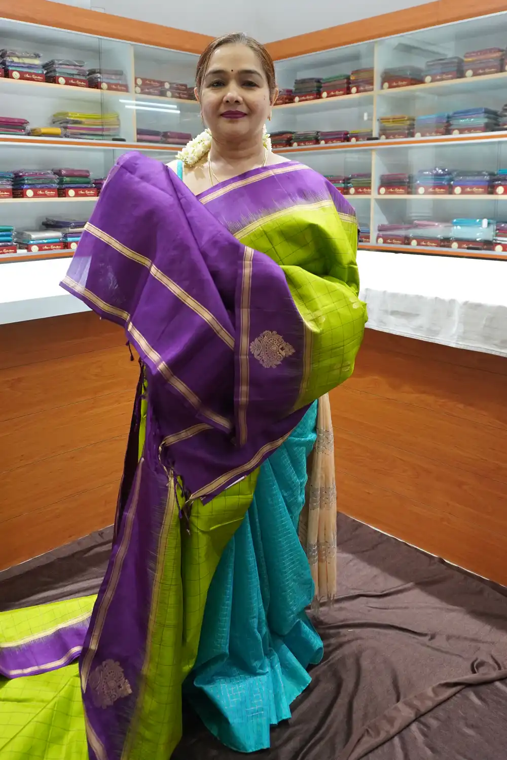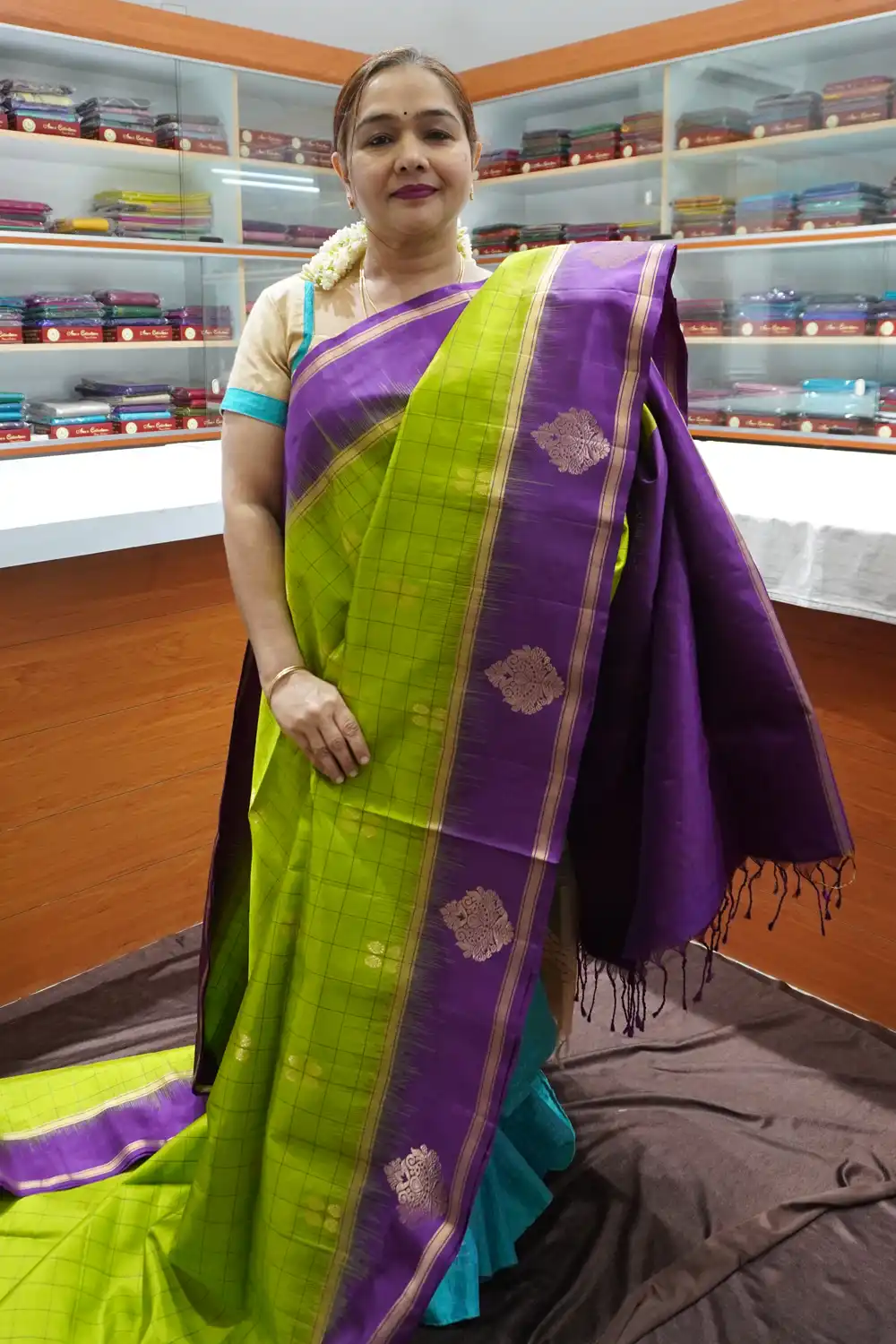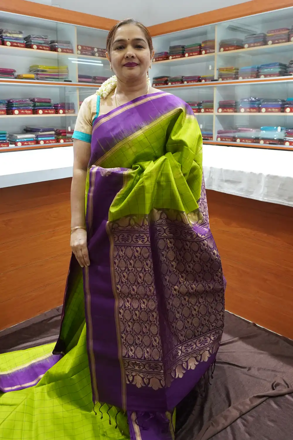 Parrot Green & Dark Purple – PRSK205 – Pure Kanchipuram Soft Silk Saree