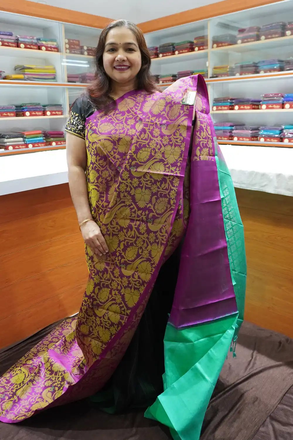 Purple & Teal Blue – PRSK188 – Pure Kanchipuram Soft Silk Saree