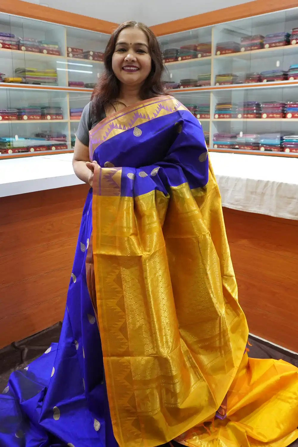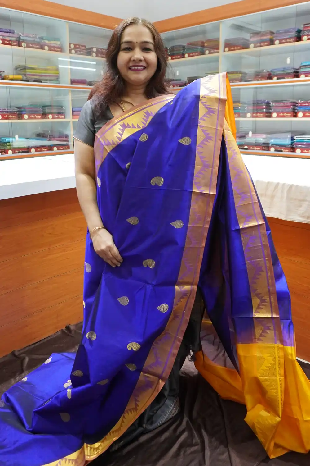 Royal Blue & Yellow – PRSC233 – Pure Handloom Silk Cotton Saree