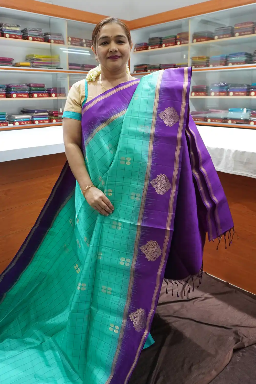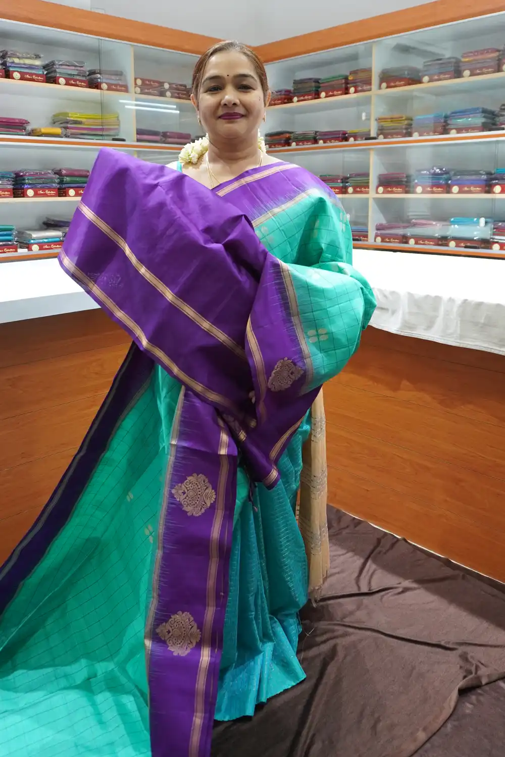 Turquoise Blue & Dark Violet – PRSK209 – Pure Kanchipuram Soft Silk Saree
